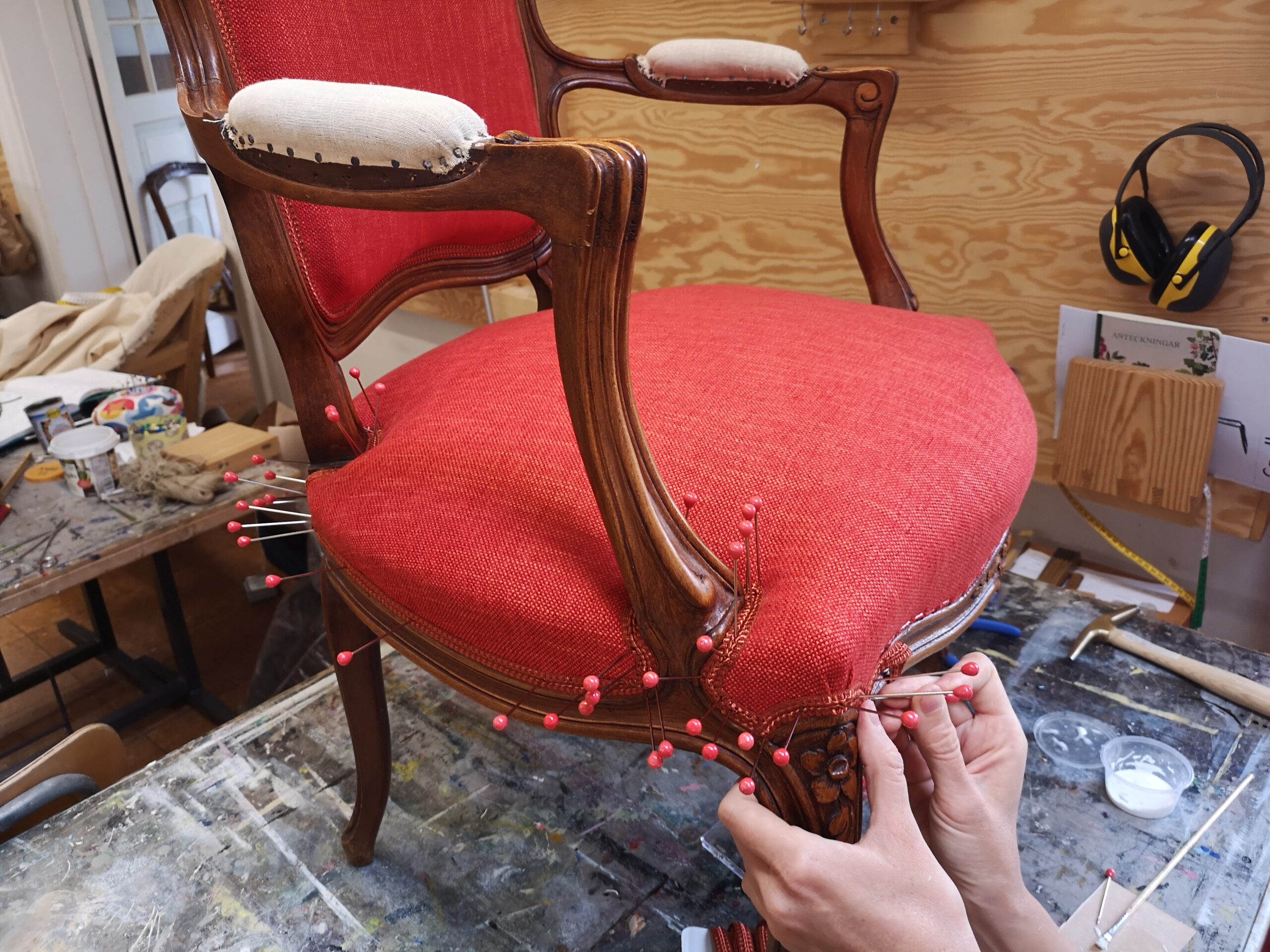 Observera att resårsnörning eller lagning av stomme/trädetaljer inte ingår i kursen, så det är väldigt viktigt att ett eventuellt fjädrande system i din möbel, samt stommen är intakt.