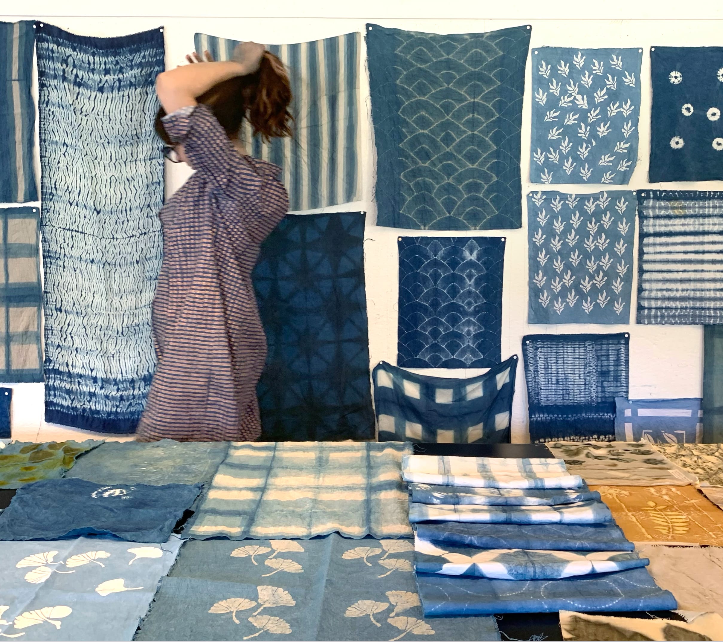 Välkommen till en djupdykning i naturens vackra färgpalett! Under kursen arbetar vi med flera naturliga färgnings- och tryckmetoder i kombination med olika mönstringstekniker. Vi använder både växtpigment från våra egna färgväxter, färdigt extraherat pigment och samlar färskt växtmaterial i det vilda. Vi färgar med naturlig indigo, både färsk och i färgbad och gör färgbad med andra växter. Du får lära dig flera olika shiboritekniker, där man genom att vika, pressa och sy reserverar olika ytor och skapar unika mönster. Du får även pröva att trycka med lerreservage som appliceras genom tryck och måleri. Och göra mönster/bilder med ekoprint och bundle dye där pigment och form från växterna överförs till tyg genom värme och press. De olika kursmomenten kommer ge dig kunskap om olika textila material och principer för naturlig färgning med fokus på hållbarhet.